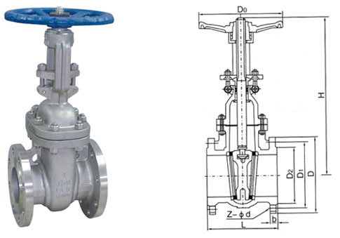 法蘭閘閥主要外形尺寸 連接尺寸及重量 |