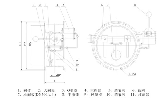 阻力。翰捎脫Q向閥控制技術,大閥板開啟度高,阻力小,阻力系數0.3—1.1; 體積小:閥體采用蝶式結構,體積只有同口徑多功能水利控制閥的1/3——1/5; 重量輕:重量只有多功能水利控制閥的1/3——1/5; 壽命長:采用斜置密封幅,具有密封面磨損自動補償功能,使用壽命大幅延長; 自動控制:閥門與水泵通過管內介質連鎖,泵閥聯動,無需人工干預,泵開閥開,泵停閥閉; 節(jié)能降耗:利用介質壓力驅動,無需外接動力,節(jié)能降耗; 密封良好:采用軟硬組合雙重密封技術,有效解決了大口徑閥門的密封難題,可長期確保“0”泄漏; 啟閉輕松:大閥板采用偏心結構,摩擦力矩小,啟閉輕松; 維修方便:控制系統(tǒng)零部件均外于閥體外面,調試簡單,維修方便,可在線檢修!∫毫ψ詣娱y可用于離心水泵出口,具有截流止回、輕載啟泵、消除水錘和流量調節(jié)等功能,可有效保護水泵和管網設備安全;閥門開度即可現場觀察,有可遠程數字顯示,同時,還可輸出4—20mA直流電流供計算機集中控制使用。
