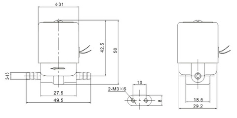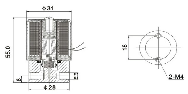 安裝:按電磁閥流向標(biāo)識,連接軟管,可任意安裝,為增強壽命,閥體平衡,線圈向上;閥體底部安裝固定孔2-M3×6