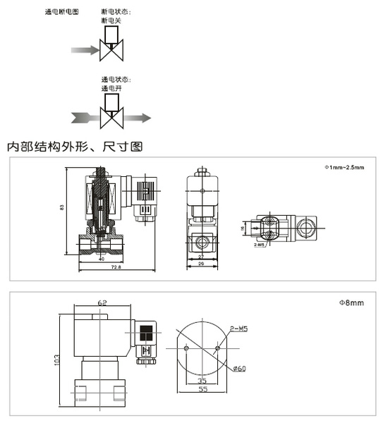 安裝:按閥上所標(biāo)流向箭頭,線圈向上,閥體水平安裝