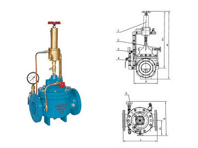 500X持壓泄壓閥 產(chǎn)品介紹: 該閥由主閥及外裝控制導閥組成。主要安裝于建筑物被保護給水系統(tǒng)的旁路中,保障主閥上游供水區(qū)的壓力,當給水管中壓力超過泄壓閥設(shè)定壓力時,泄壓閥開啟,防止管線及設(shè)備因超壓而損壞。該閥主要用于高層建筑消防測試循環(huán)系統(tǒng)的泄壓,是彈簧式安全閥的升級換代產(chǎn)品。 500X持壓泄壓閥性能特點: ◆結(jié)構(gòu)新穎合理、合理運用液壓原理控制論 ◆靈敏度高、安全泄壓 ◆閥瓣快開慢閉、無水錘沖擊 ◆運行平穩(wěn)、無噪聲 ◆使用壽命時間長 500X持壓泄壓閥主要零部件: