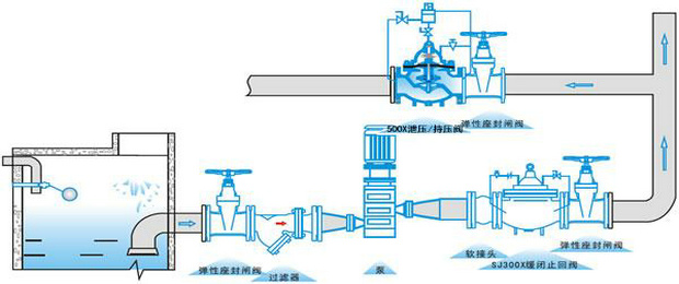 500X持壓泄壓閥安裝要求: ◆在泄壓/持壓閥前必須安裝過濾器。 ◆調(diào)節(jié)時導閥上的螺桿應(yīng)退出,啟動水泵讓水由泄壓閥泄出,逐漸擰入調(diào)節(jié)螺桿,使壓力逐步升高。一直到所需設(shè)定的壓力為止。調(diào)定后擰緊鎖緊螺母。 500X持壓泄壓閥可能出現(xiàn)的故障及排除方法: