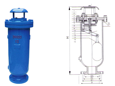 注:排氣閥在使用過程中壓力不能低于0.02Mpa,如低于0.02Mpa,排氣閥容易出現(xiàn)漏水。必須配一只閥門作為檢修用。